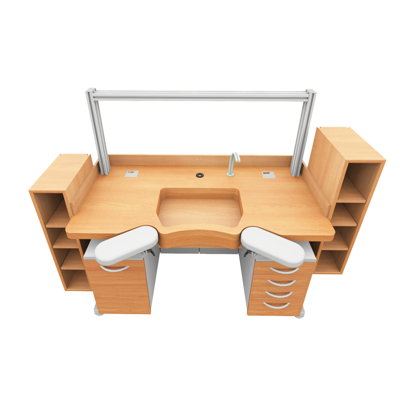 - Double rear wall with integrated multiple sockets, compressed air cabling