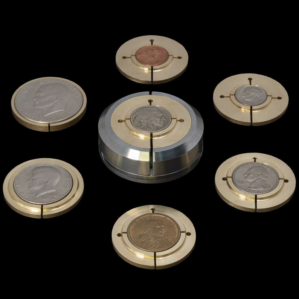 The Juratools 3X Hobo Nickel Holder features a unique brass collet system, specifically designed for the most popular coins used by artists. The sturdy outer clamp minimizes vibration, ensuring precision during engraving. The holder includes collets for the following coin sizes: Penny, Dime, Nickel, Quarter, Dollar, Half Dollar, and Eisenhower Dollar (coins not included).